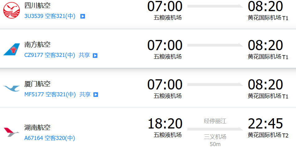 宜賓沒有直飛張家界荷花機場的航班,有從宜賓五糧液機場直飛長沙黃花機場的航班,具體參考如下: