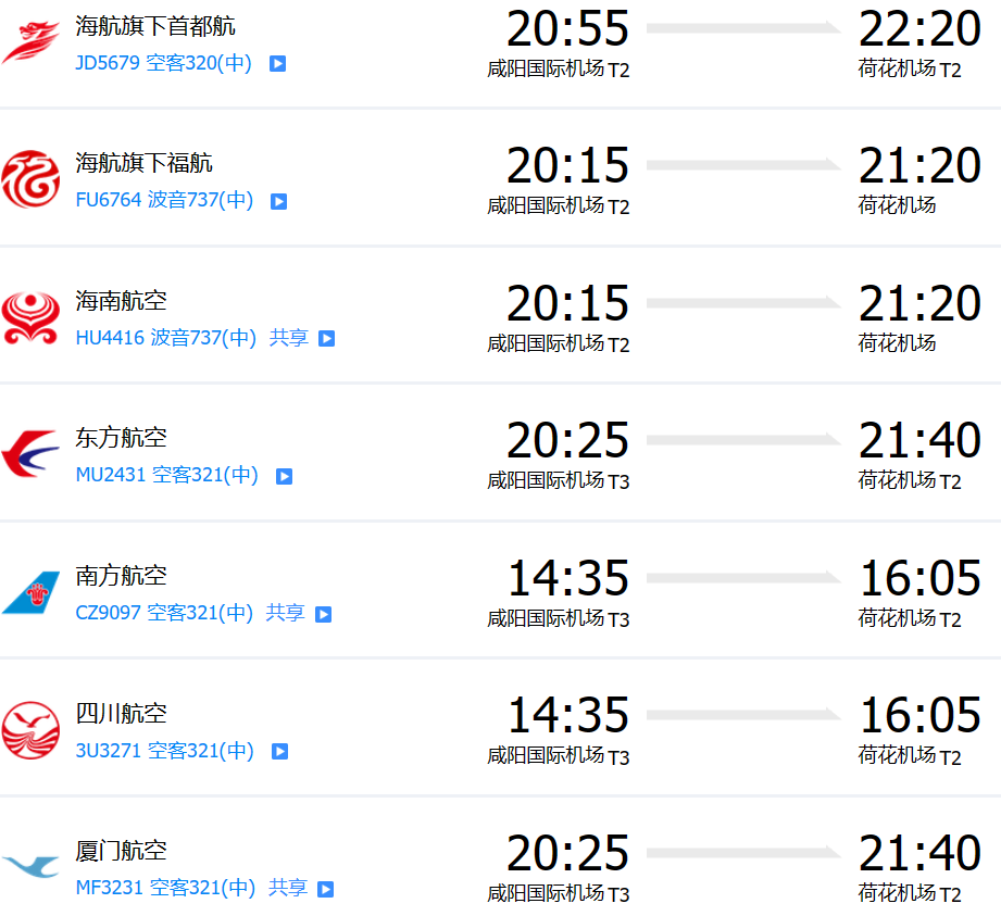 西安咸陽國際機場有直飛張家界荷花機場的航班,具體參考如下: