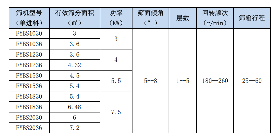 FYBS方形搖擺篩的工作原理為:篩機(jī)啟動(dòng)之后,篩機(jī)搖動(dòng)體即篩箱在慣性力的作用下作前后往復(fù)運(yùn)動(dòng),篩箱帶動(dòng)篩面作周期性搖動(dòng),從而使篩面上的物料隨篩箱一同作定向跳躍式運(yùn)動(dòng)。期間,小于篩面孔徑的物料通過篩孔落到下層,成為篩下物,大于篩面孔徑的物料經(jīng)連續(xù)翻滾跳躍運(yùn)動(dòng)后,從排料口排出,完成篩分工作。