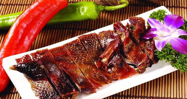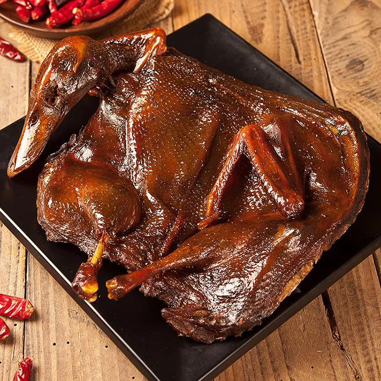 “常德醬板鴨”選用洞庭湖區(qū)蛋鴨為材料、經(jīng)三十多種名貴中藥浸泡,10余種香料、經(jīng)過風(fēng)干、烤制等15道工序精致而成,成品色澤深紅,皮肉酥香,醬香濃郁,滋味悠長(zhǎng),具有活血、順氣、健脾、養(yǎng)胃、美容之功效,是近期風(fēng)靡大江南北的一種風(fēng)味美食,是一道佐酒佳肴、送禮佳品。產(chǎn)品香、辣、甘、麻、咸、酥、綿適中,其中以辣稱奇,具有醇香可口,色香俱全,低脂不膩,回味無窮,食用方便的特點(diǎn)。