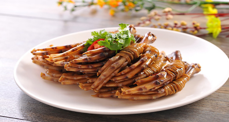 鴨腳包外觀呈琥珀色,晶瑩剔透,光澤鮮亮,蒸熟可以直接食用,香氣四溢,Q彈有嚼勁。與鹵制和其他方法制作的鴨腳相比,風(fēng)味獨特,香味更醇,入口更筋道。若是將壇裝剁辣椒、大蒜、生姜、香蔥、料酒烹飪后淋在鴨腳包上面,味道更上一層樓,令人拍案叫絕。
