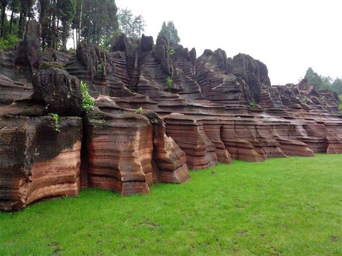 從地質(zhì)歷史的印記中我們得知:大約在4億8千萬(wàn)年的早奧陶世,這里曾是一片淺海環(huán)境,沉積形成了薄至中厚層瘤狀泥質(zhì)灰?guī)r和石灰?guī)r,到了2億2千萬(wàn)年中三疊世末期,印支期主幕安源造山運(yùn)動(dòng)使紅石林地區(qū)隆起成為陸地,并在地球應(yīng)力的作用下,形成了北西和北東向兩組共軛節(jié)理,此后,在大自然鬼斧神工的雕琢下,以“風(fēng)化”、“水蝕”、“溶蝕”和“重力”等外動(dòng)力地質(zhì)作用,將這片神奇的紅色巖溶臺(tái)地分割打磨成展現(xiàn)在我們面前的獨(dú)具鮮明特色的、中國(guó)唯一的一處紅色碳酸鹽巖石林。