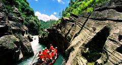 西門峽漂流全程6公里。屬萬溶江流域,它發(fā)源于兩頭羊自然保護區(qū)的群山之中;沿途危崖夾峙、樹木蔥榮、水質清澈、急流險灘星羅棋布。共有虎跳澗、白龍灘、臥龍灘、青龍灘、鬼見愁、龍王灘等急流險灘30余個。其中以青龍灘最為著名,它全長400余米,落差20余米。它和龍王灘一道堪稱國內漂流之經典。