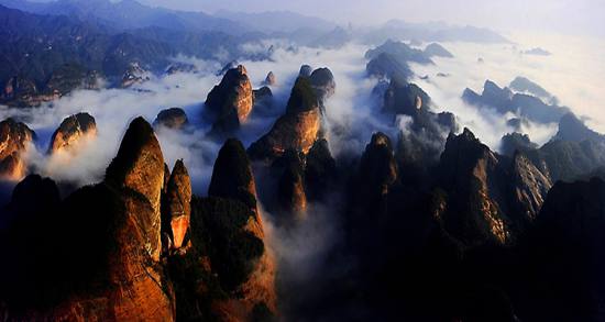 丹霞地貌屬于紅層地貌,所謂“紅層”是指在中生代侏羅紀至新生代第三紀沉積形成的紅色巖系,一般稱為“紅色砂礫巖”。世界上丹霞地貌主要分布在中國、美國西部、中歐和澳大利亞等地,以我國分布最廣,又尤以崀山為中國丹霞地貌峰景區(qū)中豐度和品位代表性和最優(yōu)美的景區(qū),以完整的紅盆丹霞地貌計,居全國第一,是一座天然的丹霞地貌博物館,被地質(zhì)專家們譽為“丹霞之魂、國之瑰寶”。