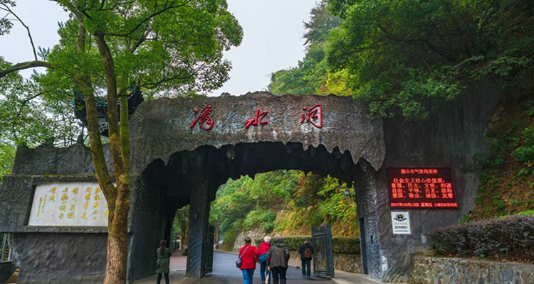 滴水洞長(zhǎng)約2.8公里,洞內(nèi)有小溪,曲曲彎彎,幽壑口朝東北而開。小溪沿岸林木繁茂,挺拔的松林中夾雜著茂密的楠竹,而上百種野花漫山遍野地生長(zhǎng)著。這里的珍貴林木有銀杏、女貞、鐵樹等30多種,這里的花卉有映山紅、臘梅、芙蓉、月季、菊花等上百種,這里的珍貴藥材有金銀花、甘草、沉香、白果等20余種,境幽景優(yōu)是滴水洞幽壑的一大特點(diǎn),人在景中如置身仙境。滴水洞正式對(duì)外開放,并陸續(xù)修造了許多旅游景點(diǎn)與設(shè)施。滴水洞門樓,依山造勢(shì),頂部垂著深灰色的石鐘乳,中覆著紫藤、絡(luò)石、烏蘿,古趣盎然,上題“滴水洞天”4個(gè)朱紅大字。門樓建在水濱崖邊,韶山水庫波光粼粼,巖邊松柏勁拔,給游人以先聲奪人之感;加上守衛(wèi)者仍保留全副武裝,仿佛毛澤東仍在洞中安歇。進(jìn)得門樓,臨水一亭翼然,倚欄俯仰,只見山風(fēng)拂面;又見游道右側(cè)山巖石壁上,倏然從松樹間躍出靈氣飛動(dòng)的“滴水洞”3字,正是毛澤東的手跡。道邊的黑色山體上,嵌著一塊塊名人留言的青石碑。漫步滴水洞游道,仿如置身詩情畫意中,松與竹,青蔥得癢人心肺,山花、野鳥、人面、歌聲,使人陶醉。
