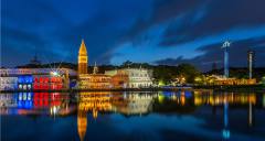 人類文明河,這里將世界上七處著名的景觀以微縮的方式匯集在河中,用長流不息的河水寓意人類文明的源遠流長。最近的一處景觀是法國四大洲噴泉,噴泉通過頂部歐、亞、非、美四位女性雕像和底部的駿馬、海豚表現(xiàn)了四大洲人民的團結(jié)向上和友誼,具有強烈的和平主義精神和時代感。從這里向遠處看,成白色貝殼狀的是澳大利亞悉尼歌劇院。緊挨著的是建在新加坡安德遜橋畔的魚尾獅,在魚尾獅旁邊的是美國自由女神像。在人類文明河的上游是埃及金子塔和其守護之神司芬克斯獅身人面像。河內(nèi)還有秘魯復活節(jié)島巨人頭像,面北朝南。